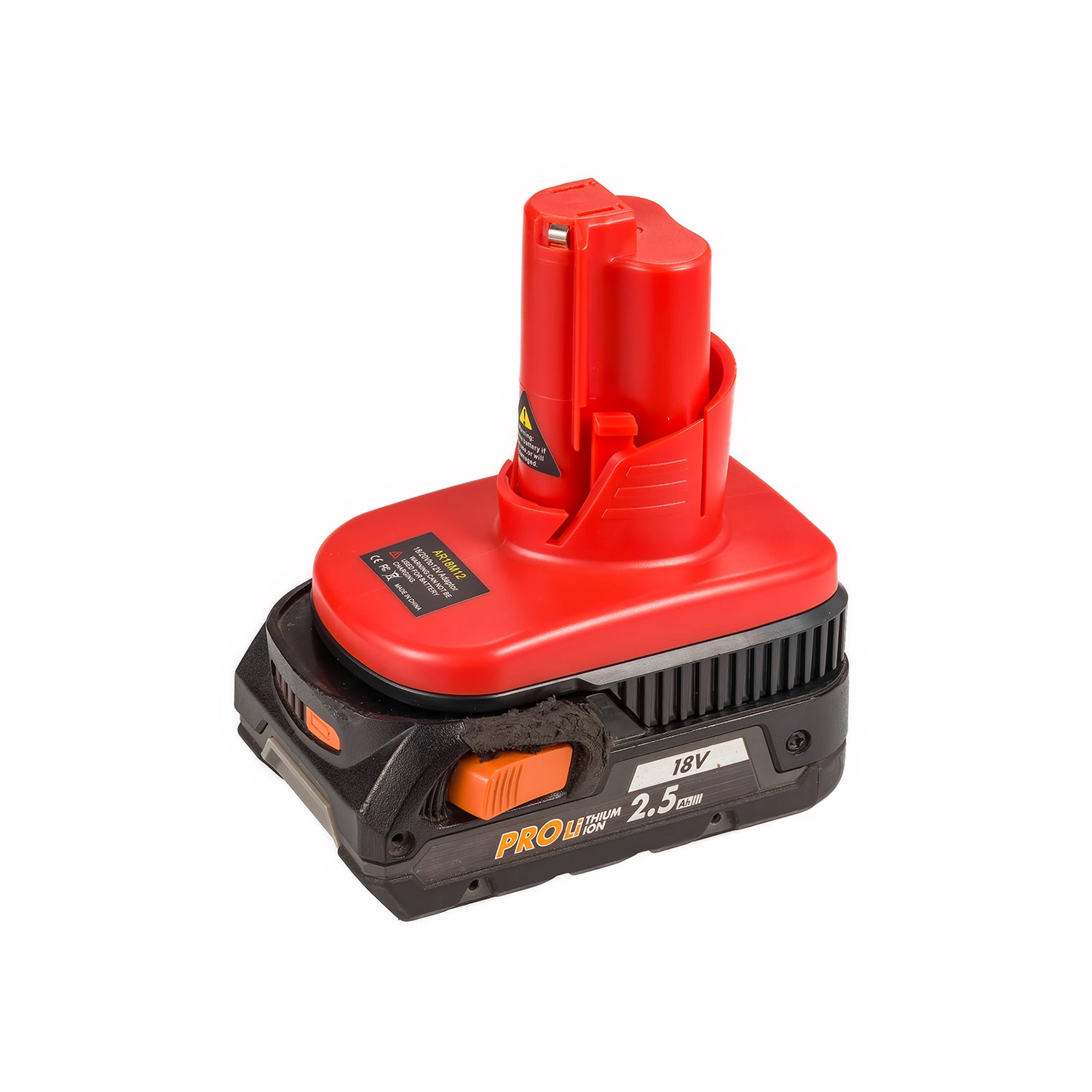 Cet adaptateur de batterie vous permet d'utiliser les batteries Ridgid 18V ou AEG 18V sur les outils Milwaukee 12V (M12) tools.