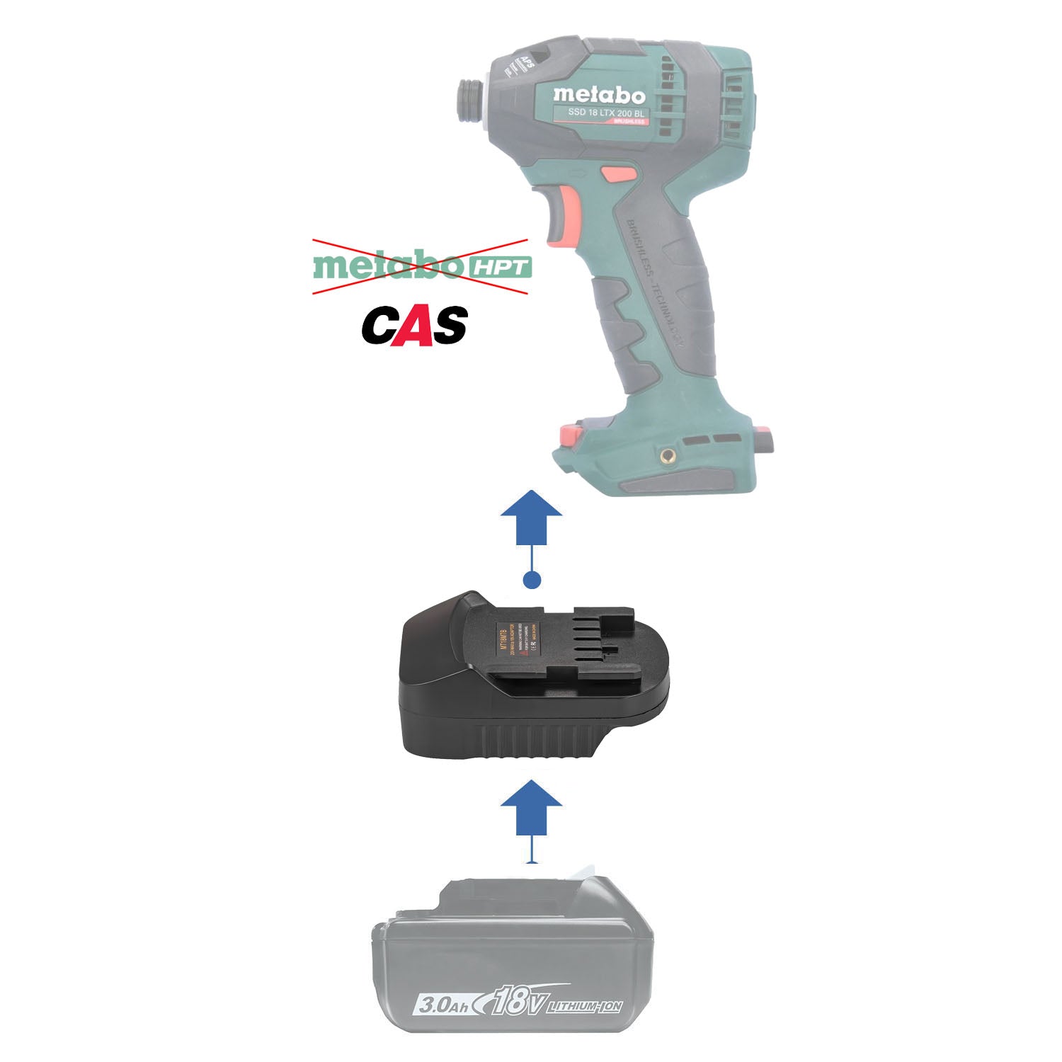 Cet adaptateur de batterie vous permet d'utiliser les batteries Makita 18V sur les outils Metabo 18V CAS.