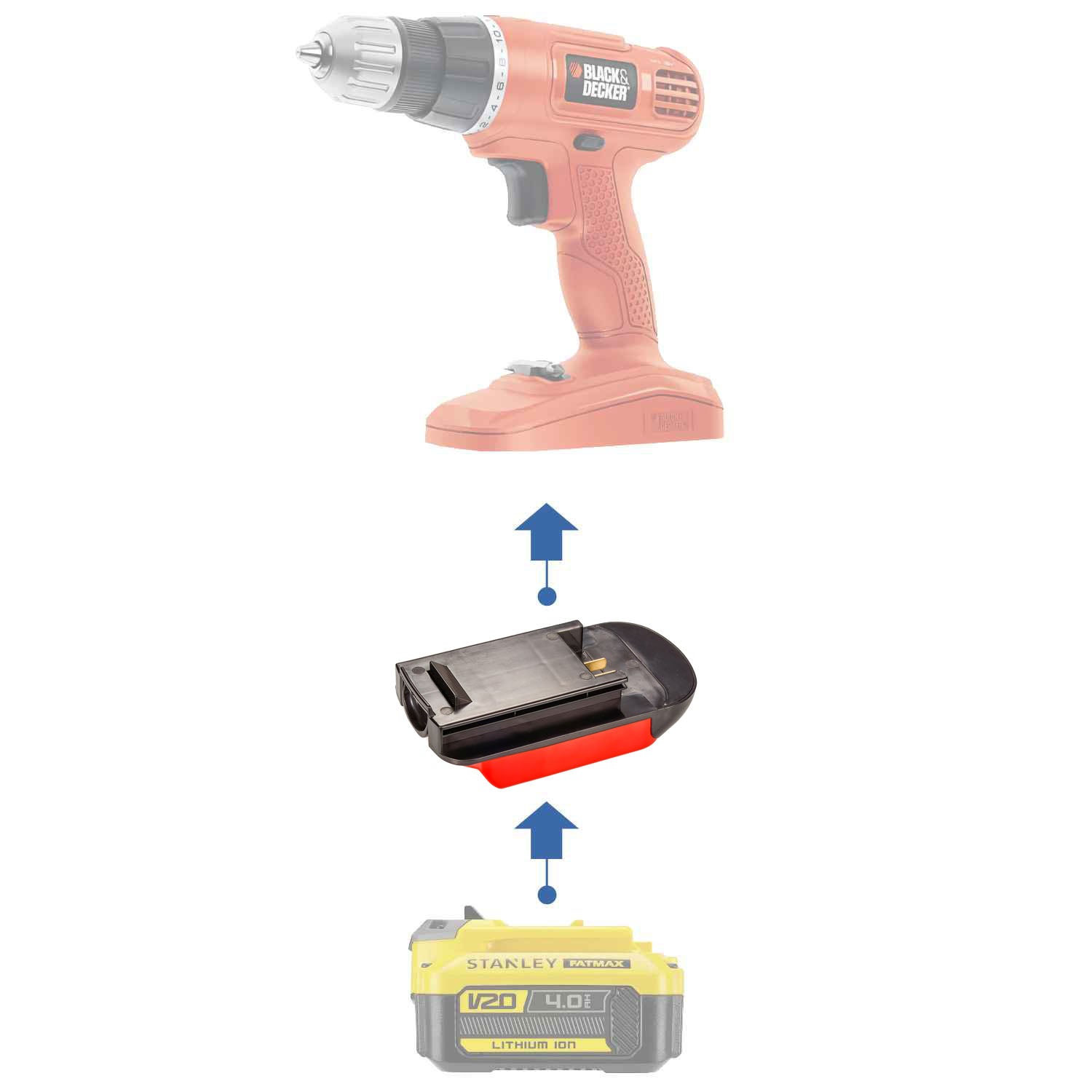 Cet adaptateur de batterie vous permet d'utiliser les batteries Stanley V20 sur les outils Black and Decker 18V.