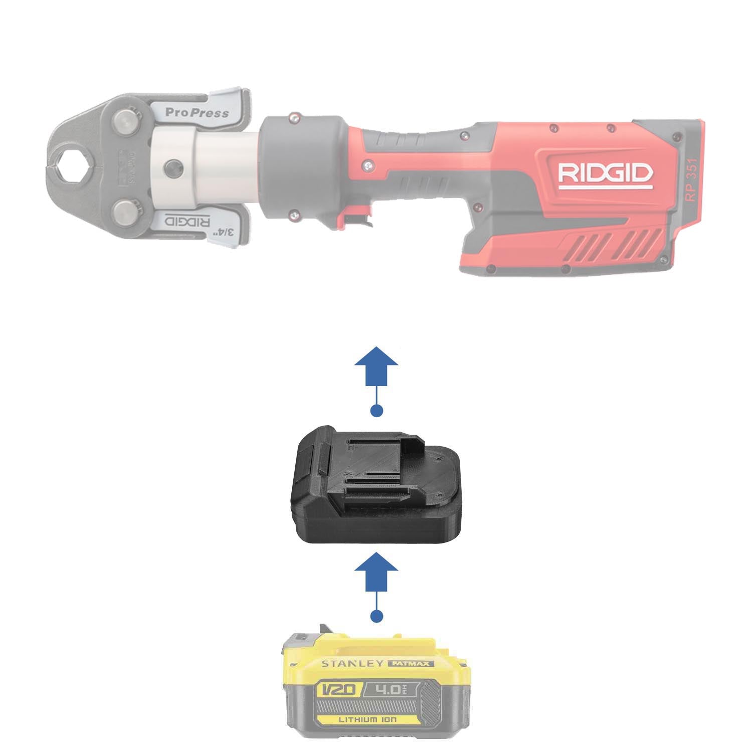 Cet adaptateur de batterie vous permet d'utiliser les batteries Stanley V20 sur les outils de plomberie RIDGID Rouge (18V, RIDGID RED).